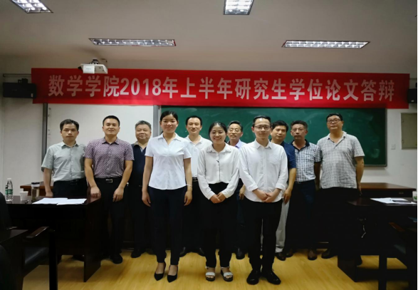 5月30日,数学学院2018届学科教学(数学)专业硕士研究生学位论文答辩会在五号学楼5511学术报告厅举行,学院特邀湖南师范大学昌国良教授、湖南科技大学曾友良教授、岳阳市教科院费建华教研员等专家,与我校数学学院孙明保院长、甘向阳书记、张映辉副院长、研究生院江五元副院长、禹辉煌副教授等共同组成答辩委员会。学校研究生院黄红霞老师出席答辩会;2017级全体研究生于现场聆听答辩。