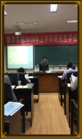 时光匆匆已是一年,还记得刚入学的懵懂无知,如今已到开题报告。六位研究生在各自导师的悉心栽培和数学学院全体老师的共同帮助下,通过自己的努力学习,找到了自己研究的方向,并为之继续奋斗。此次论文报告会对参与的2017级研究生接下来开展科学研究、撰写学位论文具有重要的指导意义。论文报告会上,我们看到学科教学(数学)专业研究生展现出自信的精神风貌和良好的专业素养;我们感受到专家们严谨治学的精神和当代教育家的专业情怀与人文精神;时间总会让人成长,在接下来的日子里,希望研究生们向着自己的目标一路前行,在自己选定的研究方向中乘风破浪,最终收获属于自己的成果。