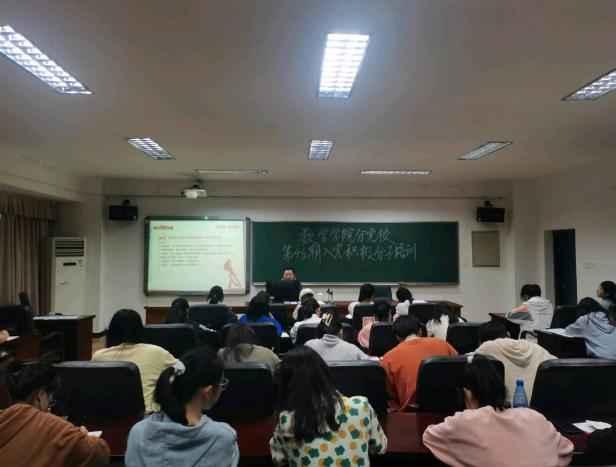 本站讯 51119005511教室,数学学院组织入党积极分子培训第三讲——深刻把握“两个确立”,坚决做到“两个维护”。太阳成集团tyc151cc组织员易政群主讲,第46期入党积极分子参加培训。