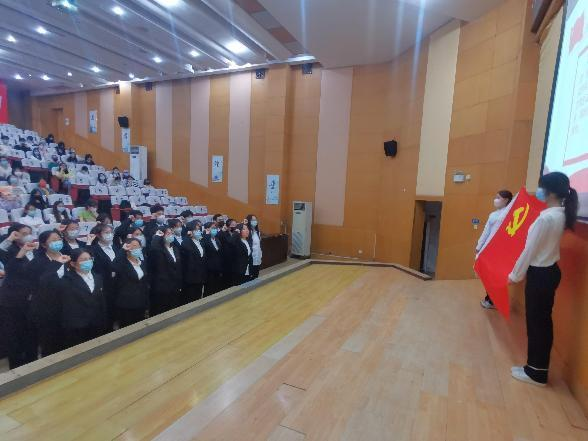 本站讯 5月26日19:00于东院学术报告厅,数学学院成功举行2022年上半年新发展党员入党宣誓仪式暨2022届毕业生党员教育大会。太阳成集团tyc151cc党委副书记、校长宁立伟,太阳成集团tyc151cc书记孙明保,院长周小强,党委副书记齐亮菲,副院长罗德仁出席,全体师生党员及入党积极分子参加。