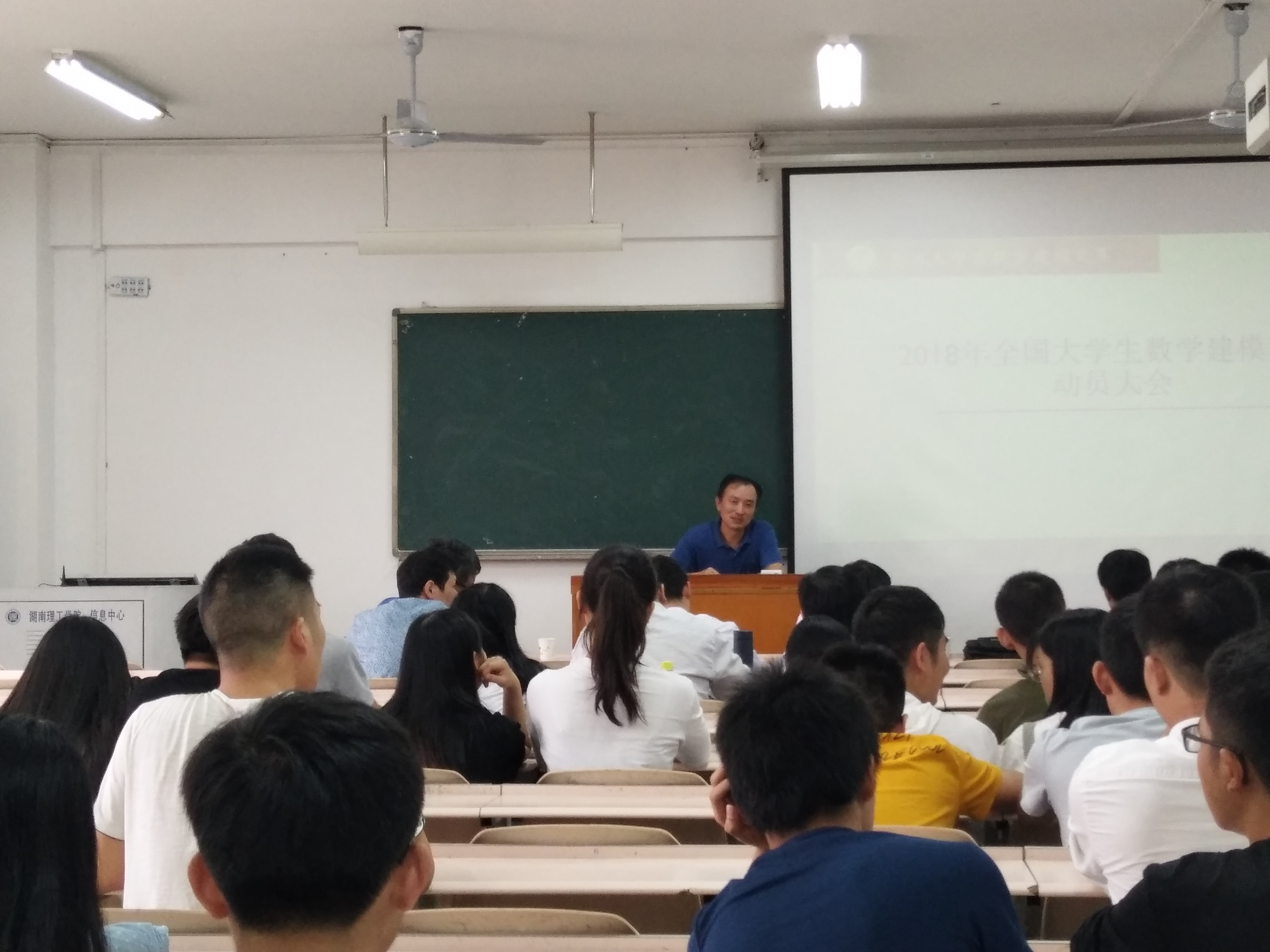 2018年9月11日下午,全国大学生数学建模竞赛动员会在数学学院副院长周立仁老师的主持下顺利召开,参加会议的有数学学院院长孙明保教授和指导数学建模竞赛的培训老师,孙院长在会议上做了重要的讲话,并对本次参加国赛做了动员和鼓励,并预祝本次参加全国大学生数学建模竞赛取得优异的成绩。最后,由何帆老师讲解了本年度参赛安排和提交论文的相关注意事项。
