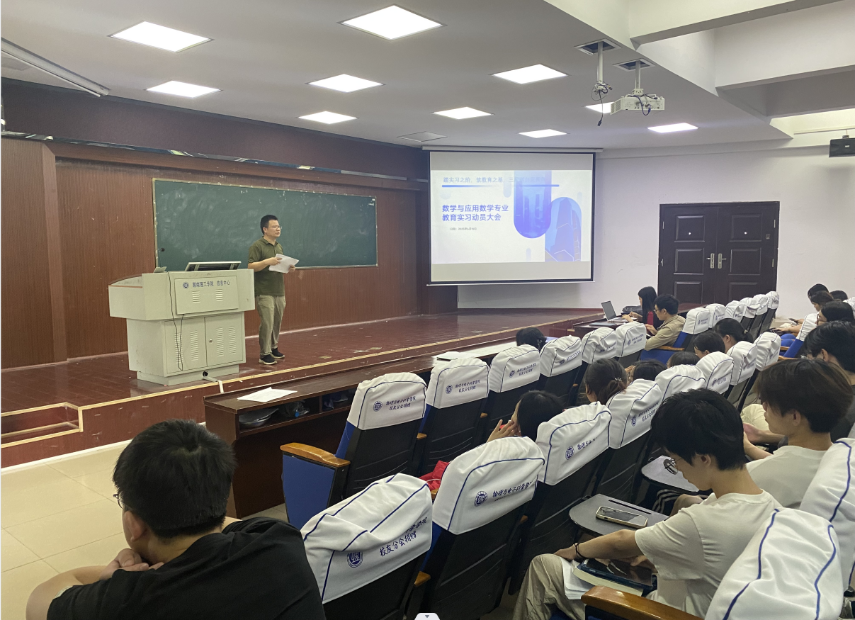 本站讯) 为扎实推进教育实习工作,明确实习任务与要求,数学学院于2025年6月19日14:30在6T1学术报告厅召开数学与应用数学专业教育实习动员大会。学院副院长黎丽梅、李松华,刘朝才,指导老师罗德仁、刘瑞芳,2022级数学与应用数学专业各班班主任及全体师范实习生出席会议。会议由刘朝才老师主持。
