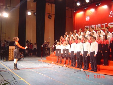 为庆祝改革开放30周年,11月11日下午2:30,数学系参加了由学院在东院演播厅举行教职工“为中国喝彩”歌咏比赛。全院共24个组织或单位参加了此次比赛。其中数学系37名老师以一首《明天会更好》闪亮登场,系党总支副书记李丽荣老师担任指挥。