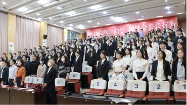 本站讯 5月23日晚7点,数学学院于综合楼学术报告厅顺利开展新党员宣誓暨“党章进行囊,信仰伴我行”毕业生党员主题教育大会,数学学院院长周小强、党委书记江五元、党委副书记齐亮菲出席,全体师生党员、积极分子参加会议。