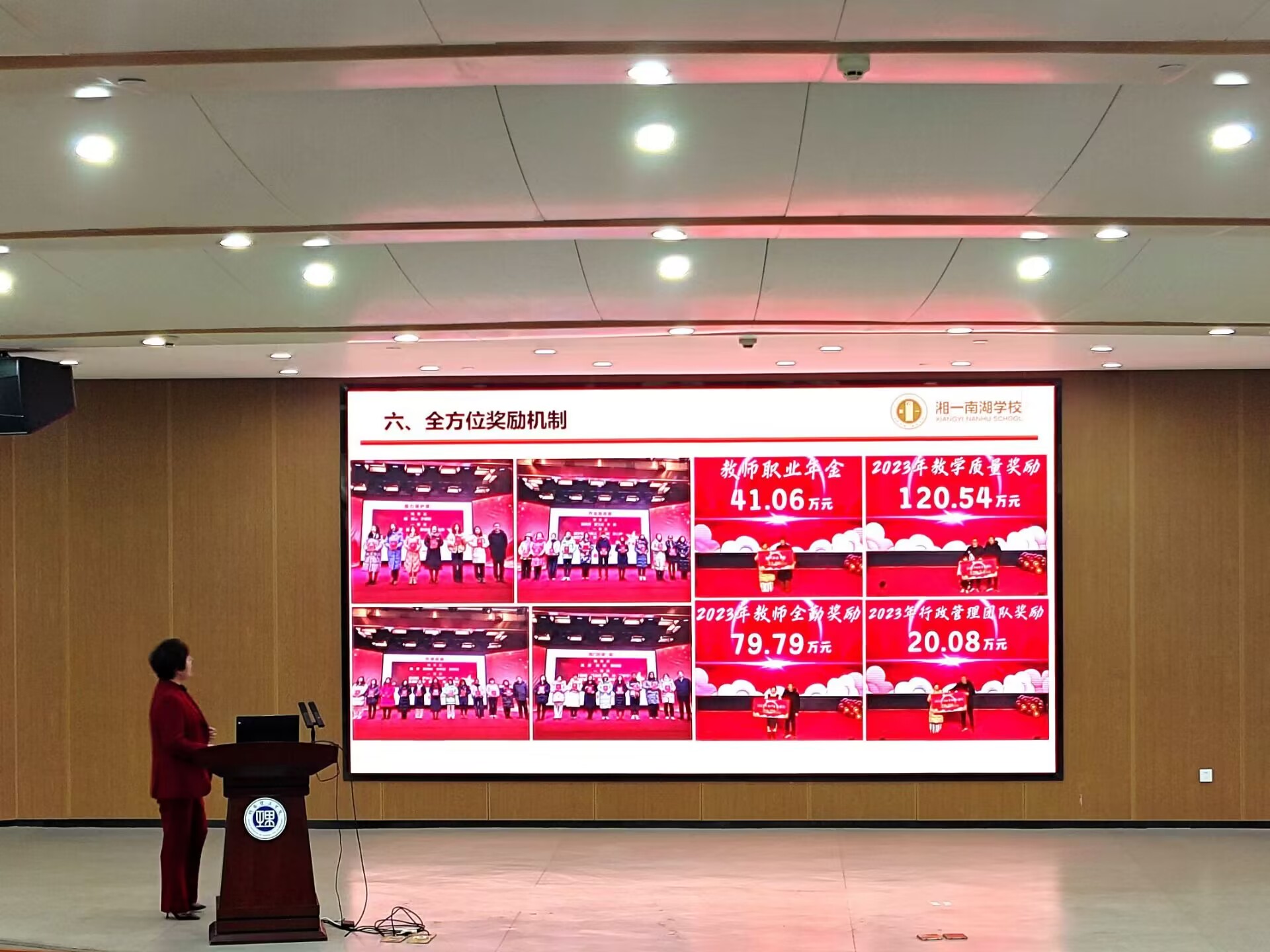 胡艳红从学校荣誉、师资队伍、教学质量等角度详细介绍了湘一南湖学校的各项优势,她强调,湘一南湖学校注重教师的专业成长和个人发展,为教师提供了广阔的职业发展空间和良好的薪资待遇。在互动环节,与会学生纷纷就教师职称评定、学科课时量、奖励机制等方面提出了自己的疑问。胡艳红结合湘一学校的实际情况和未来规划,为学生们提供了详实的解答。整场招聘会气氛热烈。