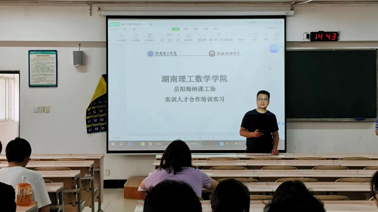 5月7号下午,数学学院于5308开展实训人才合作培训实习启动会,此次会议邀请了岳阳海纳课工场的教师刘艳和企业工程师陈峥担任主讲,2021届信计专业全体学生与会。