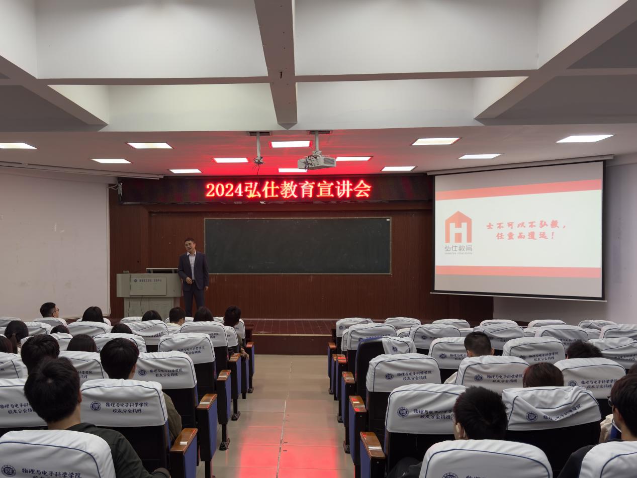11月1日下午,数学学院联合弘仕教育在6栋学术报告厅开展实习宣讲会,由弘仕教育陈老师主讲,数学22-1BS、数学22-2BS全体同学与会。