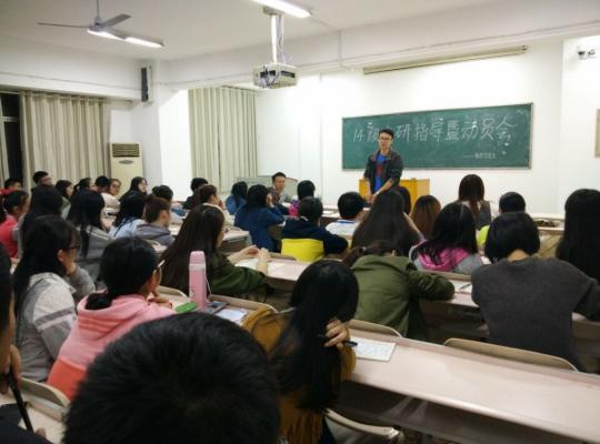 校园网讯为了帮助我院14级同学更好地了解与准备考研,数学学院10月12日晚于5409教室举办14级考研指导暨动员会。党总支副书记易政群、考研专干何铁勇、罗德仁博士出席会议。14级有考研意向的同学参加会议。