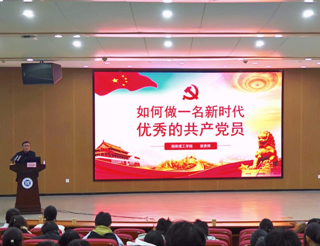 随后,谢贵辉书记以“如何做一名新时代优秀的共产党员”为主题为全体党员、入党积极分子讲党课。告诉党员首先要加强党性修养,不断提高自身素质,牢记自我角色,强化党员意识,其次也要树立正确三观,坚持为民宗旨,遵守党纪国法,发挥自身的模范作用,永葆政治本色。最后,谢贵辉书记强调,共产党的初心是为了全人类的解放而努力,为大众谋幸福,是把人民群众对美好生活的向往当做最终的奋斗目标,并希望各位党员能够不忘初心,永远跟党走。