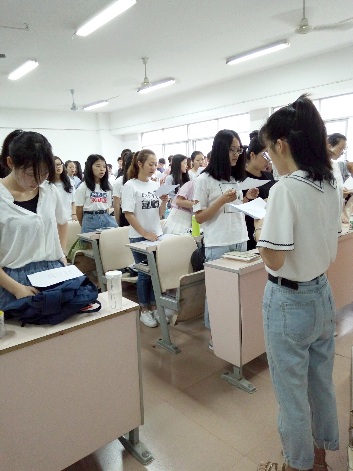 本站讯   65日,应数一班、二班于5号教学楼5504教室开展“爱国朗读,青春发声”课前三分钟朗读活动,本次朗读内容为苏轼的《定风波》。