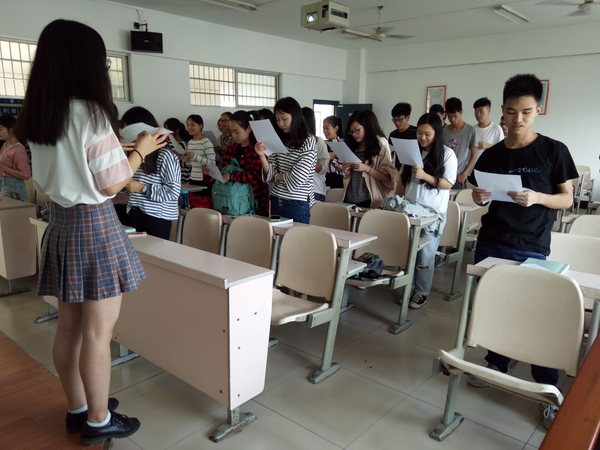 本站讯   522日,15级应数二班在5号教学楼5410教室举行“爱国朗读,青春发声”课前三分钟朗读活动。
