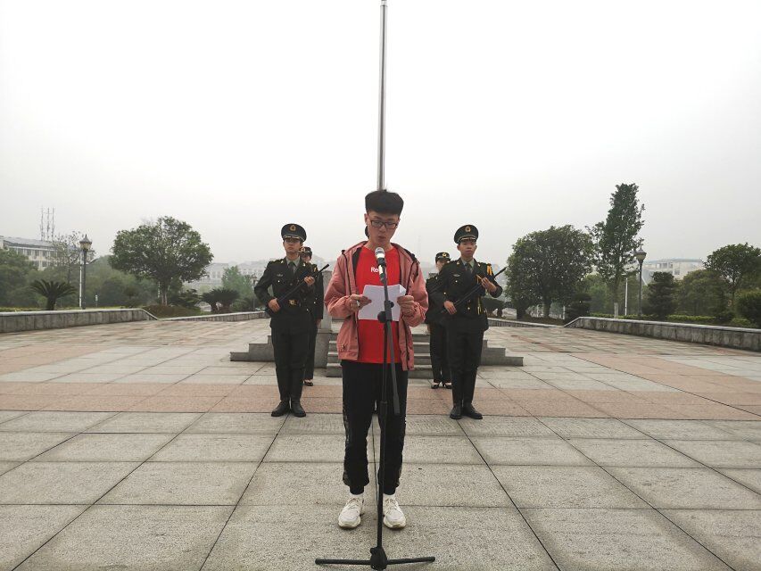 国旗护卫队以铿锵有力的步伐入场,国旗在朝阳的照耀下,在全体老师及同学的注视下缓缓升起。随后,由学生代表喻忍发言,他指出最为当代大学生,要努力学习,掌握丰富的专业知识,要紧跟党的方针路线走,实现中华民族的伟大复兴。党总支书记孙明保老师在这次升旗仪式中强调要不忘初心,牢记使命,铭记党的历史,勇于奋斗。