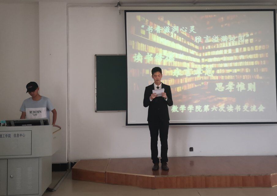 本站讯 书香沁润,气自芳华。4月23日下午3点,为响应学校“书香滋润心灵,雅言溢满校园”读书节活动,数学学院在5409教室举行了第六次读书交流会,数学学院17、18级部分同学参加。
