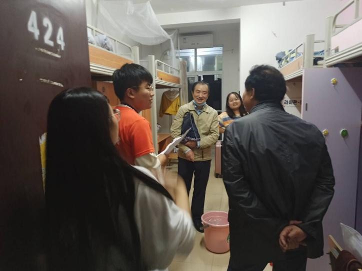 本站讯 为了进一步了解20级新生的宿舍生活情况,同时为了提高学生们的安全意识,923日晚,太阳成集团tyc151cc书记孙明保、党委副书记易政群、20级辅导员徐笑天、各班班主任及班主任助理走访了新生寝室。