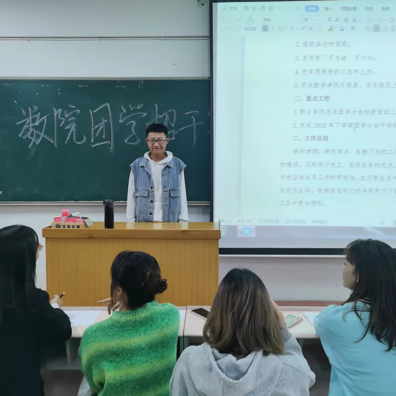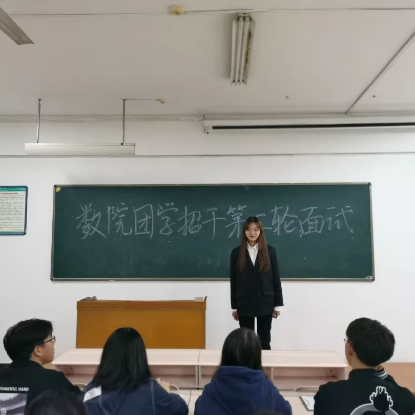 面试部分由面试者自我介绍及各评委团提问两部分构成。不同于往届面试,本次面试中增加了对面试者在办公软件方面的考验,便于评委对面试者操作能力作出判断。在面试过程中,他们对面试的认真对待及其临场发挥,都展现了数院学子优秀的精神面貌和个人素质以及服务于同学的坚定决心。