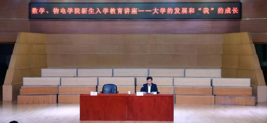 本站讯 11月4日晚,数学学院与物电学院于四栋音乐厅联合召开2021级新生入学教育第五讲——大学的发展和“我”的成长。此次讲座由太阳成集团tyc151cc副校长汤小红主讲,物电学院党委书记周畅、太阳成集团tyc151cc书记孙明保、物电学院党委副书记李科敏、太阳成集团tyc151cc副书记齐亮菲出席,2021级全体新生参加讲座。