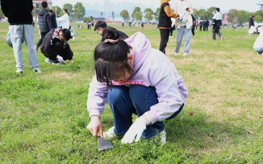 本站讯 为帮助大学生树立正确的劳动价值观,弘扬劳动精神,促进德智体美劳全面发展,3月26日下午,数学学院2022级全体学生在阳光草坪开展劳动教育实践课。