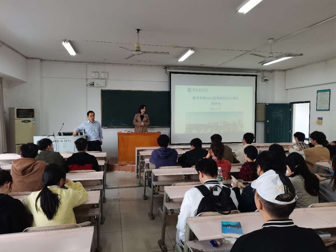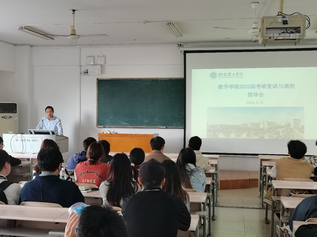 本站讯 3月15号下午4点,数学学院在5409教室顺利召开2023年考研复试与调剂指导会。数学学院院长周小强、党委副书记齐亮菲、研究生辅导员佘宁远出席,2023年考研复试考生参加本次会议。