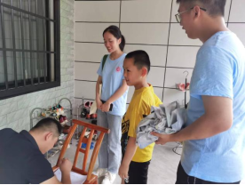 本站讯 迎着清晨第一缕朝阳,在华一村村委会的大力支持下,团队指导老师徐笑天带领 “ ‘翼’ 行乡村——农家书屋激活者 ” 乡村振兴促进团走进村名家中,进行农家书屋宣传。