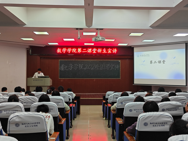 为了帮助2024级新生快速掌握第二课堂的认证流程和注意事项,数学学院于9月19日19时在6栋学术报告厅成功开展了第二课堂宣讲会。本次宣讲会由团学分会执行主席刘金豪主讲,于佳文主持,数学学院团学分会主席团全体成员及2024级全体新生与会。