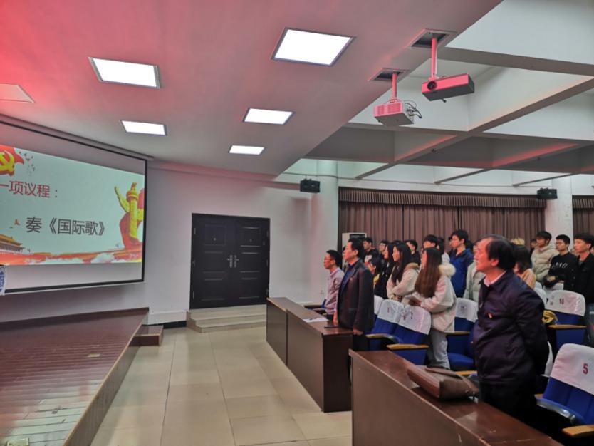 本站讯12月12日晚7:00,于6栋学术报告厅,数学学院党总支举行2019年下半年入党宣誓仪式。党总支书记孙明保同志,党总支副书记易政群同志出席,学生党支部、研究生党支部全体党员,18名新发展的党员,全体入党积极分子参加。
