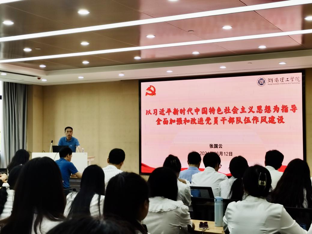 会议在全体师生党员奏唱国歌中拉开帷幕。江五元带领全体师生党员重温入党誓词,院领导为毕业生党员赠送信仰礼包并送上了深情的寄语。随后,张国云以《以习近平新时代中国特色社会主义思想为指导,全面加强和改进党员干部队伍作风建设》为主题,分别从“新征程上作风建设怎么看”、“百年党史作风建设怎么样”、“时代要求作风建设怎么办”三个角度来阐述作风建设的重要性、紧迫性和必要性。张国云在党员干部队伍作风建设上提出了四点建议:抓上抓下、真抓实抓、敢抓会抓、抓常抓长。他强调,作为党员,尤其是党员干部,要时刻保持清醒的头脑,自立自强,自省自律,把党的伟大自我革命进行到底。