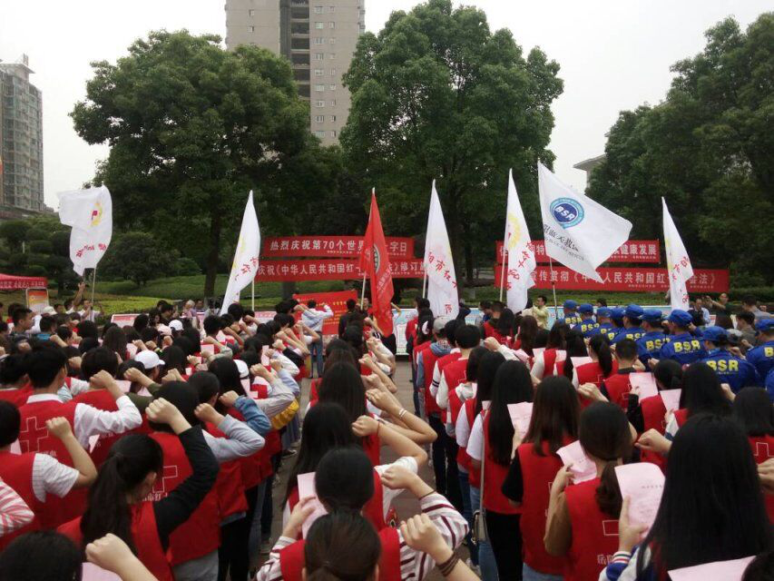 本站讯    56日,数学学院为学习宣传贯彻《中华人民共和国红十字会法》,促进中国特色红十字事业持续健康发展,联合湖理无偿献血志愿者服务队召集100名志愿者于南湖广场参与5·8世界红十字日宣传活动。