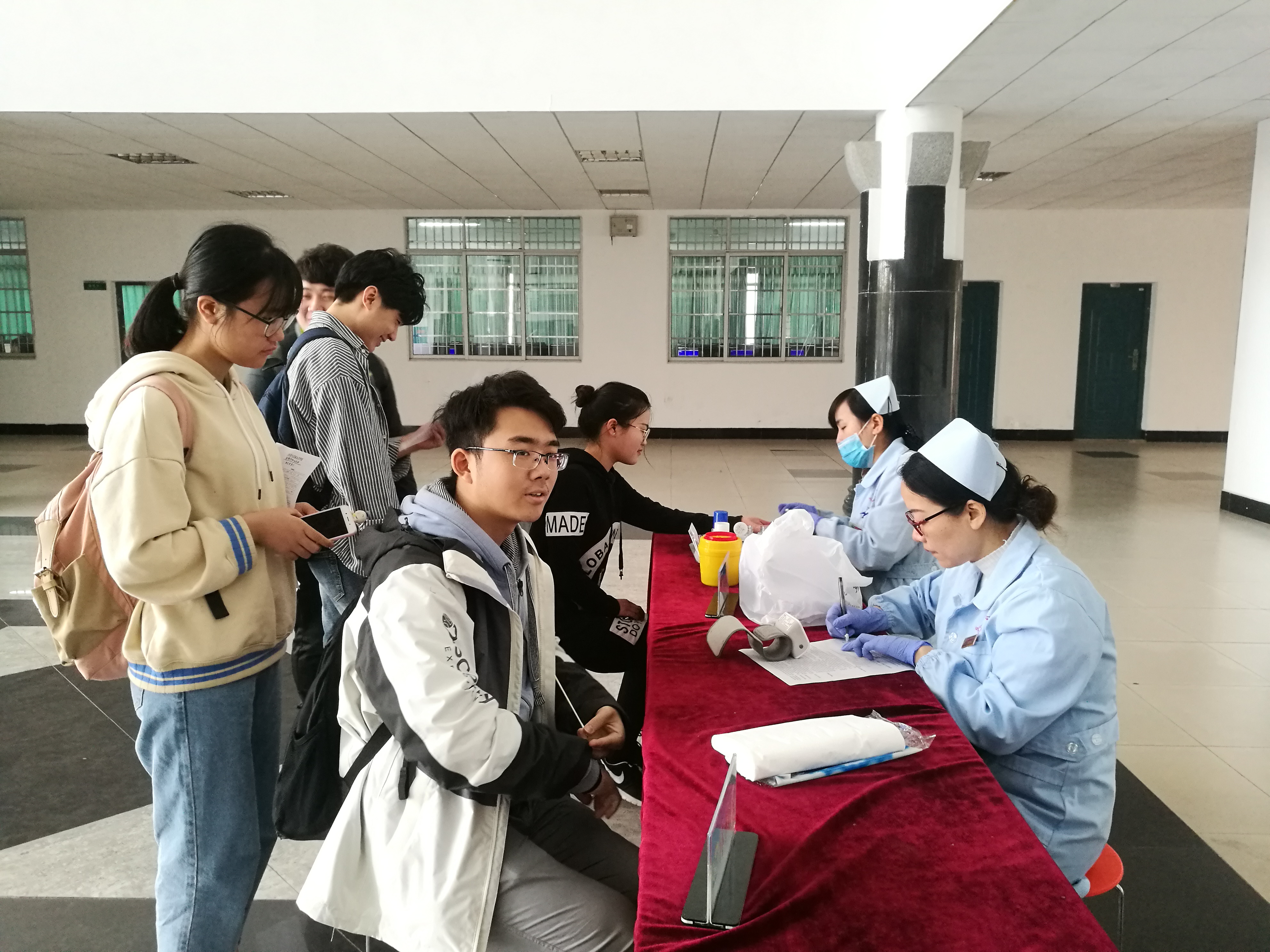在此次献血活动中,岳阳市中心血站的多位医护人员来到现场与同学们进行了零距离的接触,为同学们检查身体,普及献血知识等等。数学学院青志中心志愿者以及团学分会的学生干部积极配合医护人员的工作,参与组织现场填表,维持现场秩序的工作。各位同学们积极参与其中,为公益献血事业贡献出自己的力量。