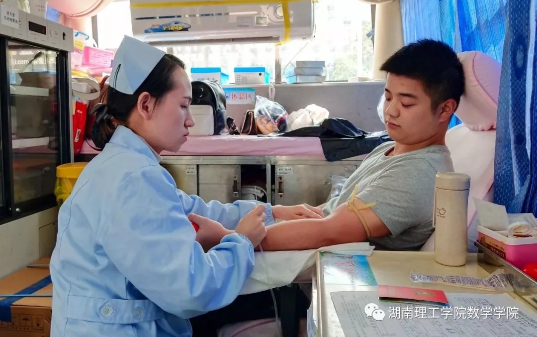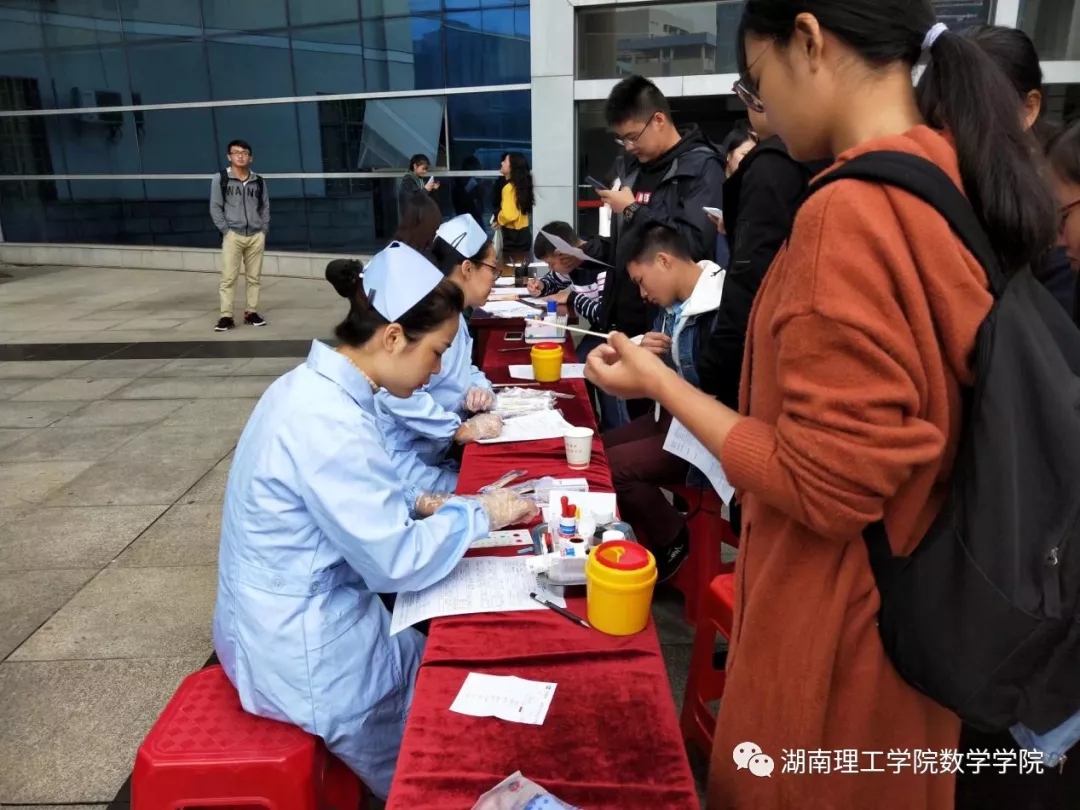本站讯 为提高同学们的社会责任感,发扬奉献精神的传统美德,在10月16日至19日期间,由岳阳中心血站联合太阳成集团tyc151cc数学学院举办的献血活动在5栋教学楼下举行。至19日下午3点整,共计有206位同学参与到该活动中,为社会奉献出自己的一份爱心。