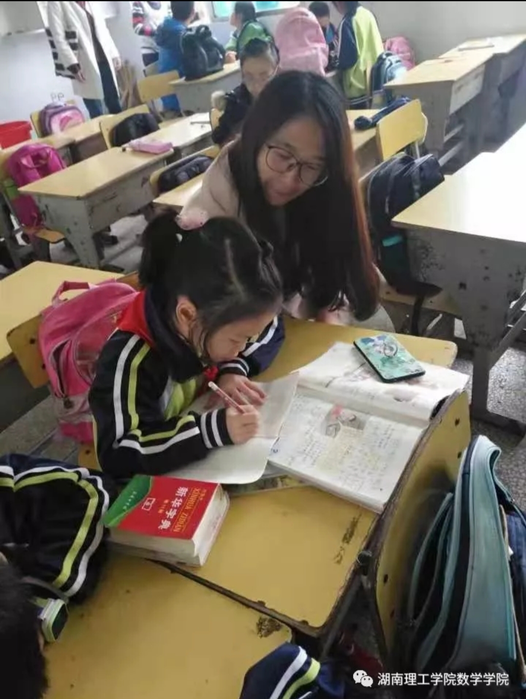 蔡家小学的义务支教活动是数学学院的特色活动,本次活动我们全体学生党员牵手志愿者们,以一对一对的形式进行,即一名学生党员牵手一名志愿者给相对应的学生进行作业等辅导。本次辅导的对象大多是一二年级的小朋友,所以我们的学生党员和志愿者会带着他们读课文,做简单的计算题,背诵等。整个活动过程中,学生党员们都十分积极主动,努力协助志愿者与孩子进行沟通交流。